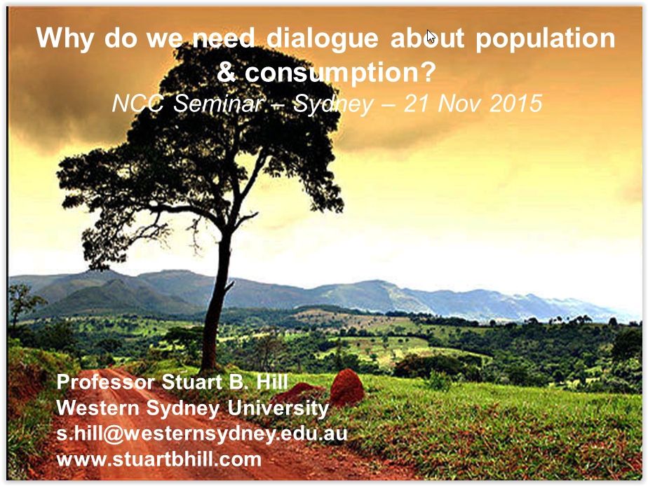 Why do we need dialogue about population & consumption? – Nov 2015 – Sydney – Nature Conservation Council Seminar